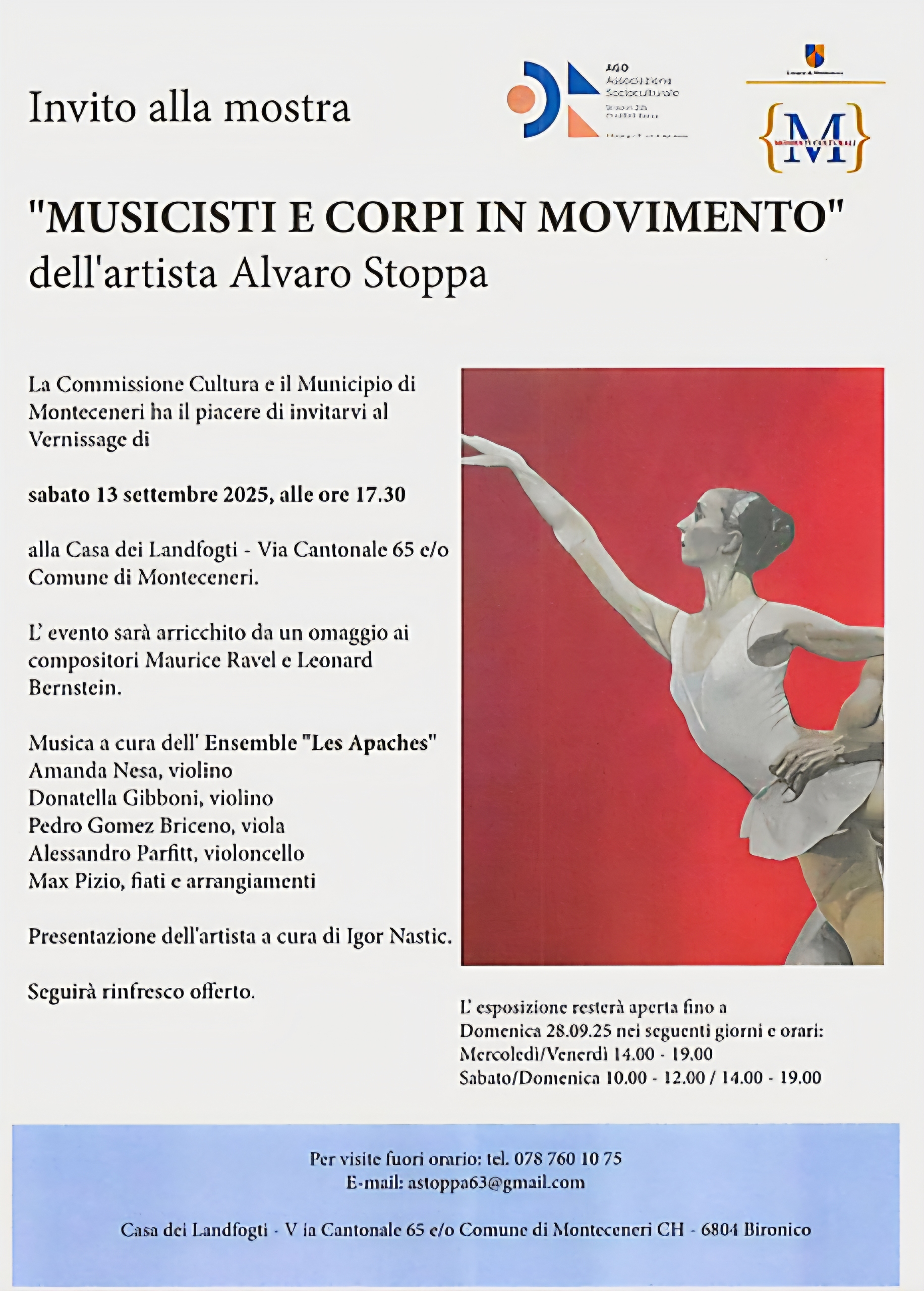 Il vernissage si terrà sabato 13 settembre e la mostra sarà aperta fino al 28 settembre.