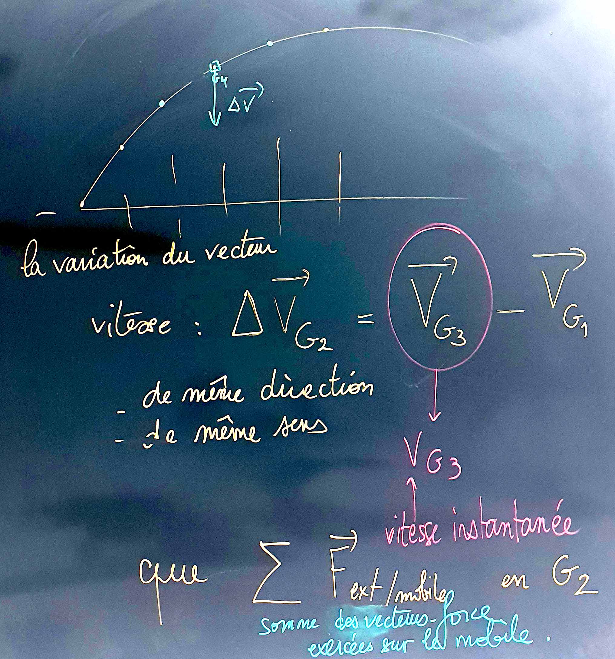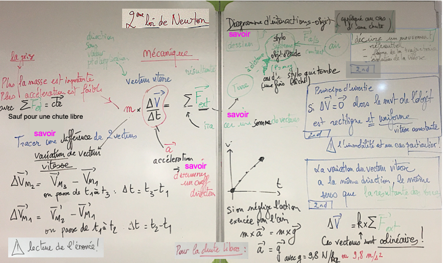 + De la 2nd à la 1ère : vers la 2ème Loi de Newton et Mouvement (chute libre + principe d'inertie, vecteur vitesse intantanée) et résultante des vecteurs force + Introduction (visuelle) de la 2 ème loi Newton