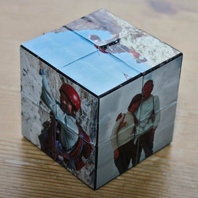 two original 4x4x4 with Cubesmith stickers; one with photo of Kon climbing Marmolada "Via Ideale"