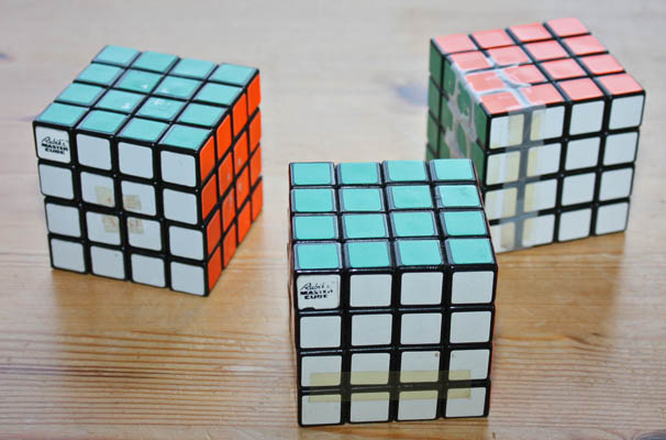 three original 4x4x4 with original stickers