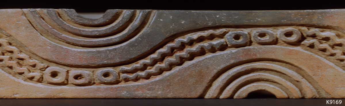 Description: panel from the temple of the sun. both text and image rest on a double-headed band decorated with earth symbols.