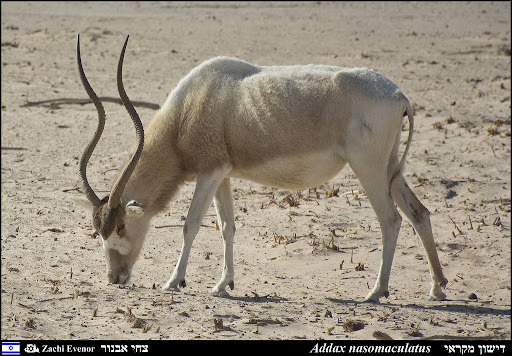 Addax grazing in Hai-Bar Yotvata, Israel. Photo by Zachi Evenor (source)