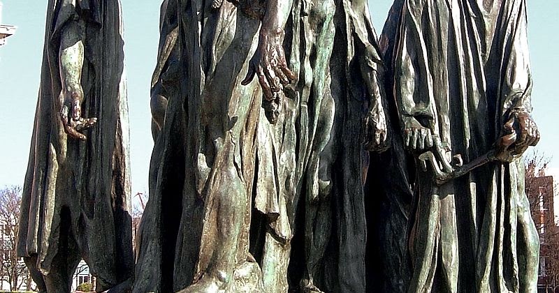 En 1884, el municipio de Calais le encarga Los burgueses de Calais para inmortalizar un hecho famoso en la historia de la ciudad y de la guerra de los Cien Años. Rodin se sentirá atraído por la tarea de crear un monumento que conmemora a un grupo y no a un personaje individual. Pero la unidad formal del conjunto era menor que la psicológica, concentrándose en la reacción individual de cada miembro del grupo. Los seis burgueses parecen totalmente inconscientes de la presencia de los otros. Lo único que los une es su condición de rehenes. Son antihéroes, complejos seres humanos, diferentes cada uno de ellos entre sí, transmite una profunda desmoralización, al representar a un grupo de ciudadanos abatidos por su derrota ante los ingleses.