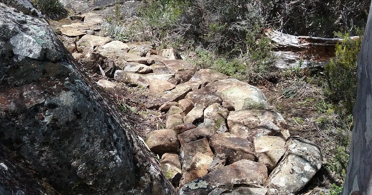In 2006 when we commenced positioning rocks on the extensive muddy sections, there was plenty of clear dirt or herbs at the edges of the rocks. However over the years the recovery has been so good that vegetation was starting the press over them, but it wasn’t until this was cut back that we realised how far it had grown. In many instances we discovered the rock edge was hidden by 10-15cm of growth at ground level.