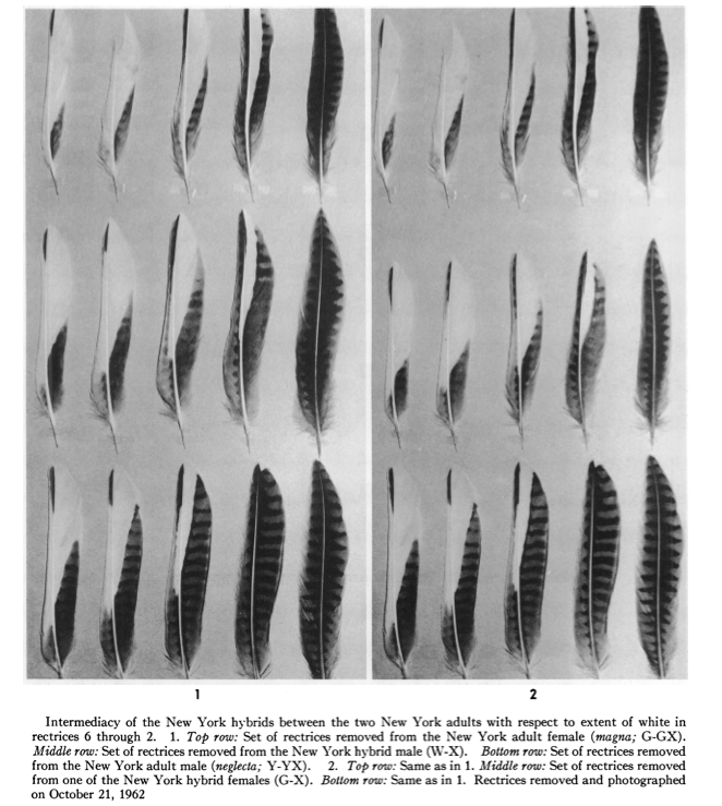 Photos of hybrid rectrices from 1962 in New York (single page scan) from Laynon et al. 1996