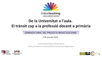 El passat dimecres 7 de juny vam tenir l'oportunitat de presenciar la jornada final del projecte “INDUCTEACHING: validació d’una proposta d’inducció docent lligada a la formació inicial i primer any docent de mestres/as de primària” (2020ARMIF-00022). Amb la participació dels centres educatius, les universitats i altres institucions educatives, vam compartir un espai de diàleg dedicat a la inducció docent, la presentació del projecte INDUCTEACHING i l'exposició de les experiències associades a la seva participació. Gran manera de tancar un projecte que no hagués estat possible sense la col·laboració de tots els agents implicats.