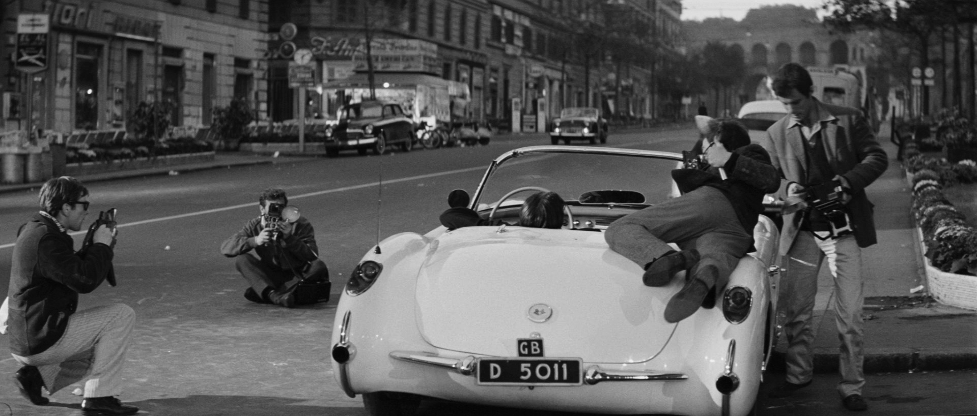 アメリカの女優(シルヴィア)がやってきて、取材をかねて案内役をすることになり、役得からふたりきりのラブロマンスを楽しむことができた。トレビの泉ではしゃぐ姿は、幽玄ともいえる映像美をとどめるものだ。恋人の俳優が顔を見せることからトラブルとなるが、スキャンダラスな刺激を求めて、芸能レポーターと行動をともにしている。スターに群がるようにしてカメラを向け、スクーターで追いかける姿はイタリア社会の卑属さの縮図のようだ。