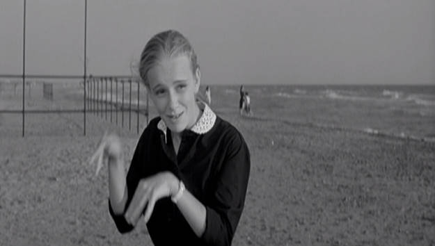 ヨーロッパから発信する、アメリカのハリウッド映画への対抗意識は、イタリアでのネオリアリスモやフランスでのヌーヴェルバーグに対応するように、知的前衛を標榜するものだった。頭でっかちの不毛の遊戯に向かって、最後に救いがあるかのように、純粋無垢な少女(パオラ)を登場させている。レストランで働いていて、以前から気になっていた娘だった。浜辺の向こうから語りかけるが、主人公には聞き取れない。海水に浸かることを嫌がりさえしなければ、近づこうとすることは可能なはずだが、そんな意志の力はなかった。誘われるままに仲間が向かう方向へと、少女に背を向けて去っていった。はじまりのキリスト像と対比をなしているようだが、この謎めいた少女のしぐさと口の動きが、いつまでも記憶に刻まれるものとなった。それは一瞬出てくるモランディの静物画の静寂的宇宙と共鳴しあっている。