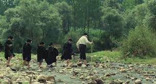 豪華絢爛たる王朝絵巻ではない。気品や優雅さは微塵もなく、むき出しの欲望だけが、果てしなく繰り返されている。無意味なことばが飛び交っている。絶えず口を動かしているのは、食べることとしゃべることだ。考え抜かれたセリフではなく、感覚的な日常語なのだ。ローマの市井で今も続いている無駄話である。はじまりがギリシャ悲劇を思わせる荘重な舞台劇からスタートするのが対照的だが、やがてローマの猥雑さへと変貌をとげていく。主人公のゆくえすら見えてはこない。ローマの衰退と歩みをともにするロードムービーは、はかなくも美しいものだった。旅路のはて巨石文化をとどめるメンヒルのそばにたたずむ姿があった。詩人は権力者の前で排斥され、盲目となって死へと向かうしかないようである。