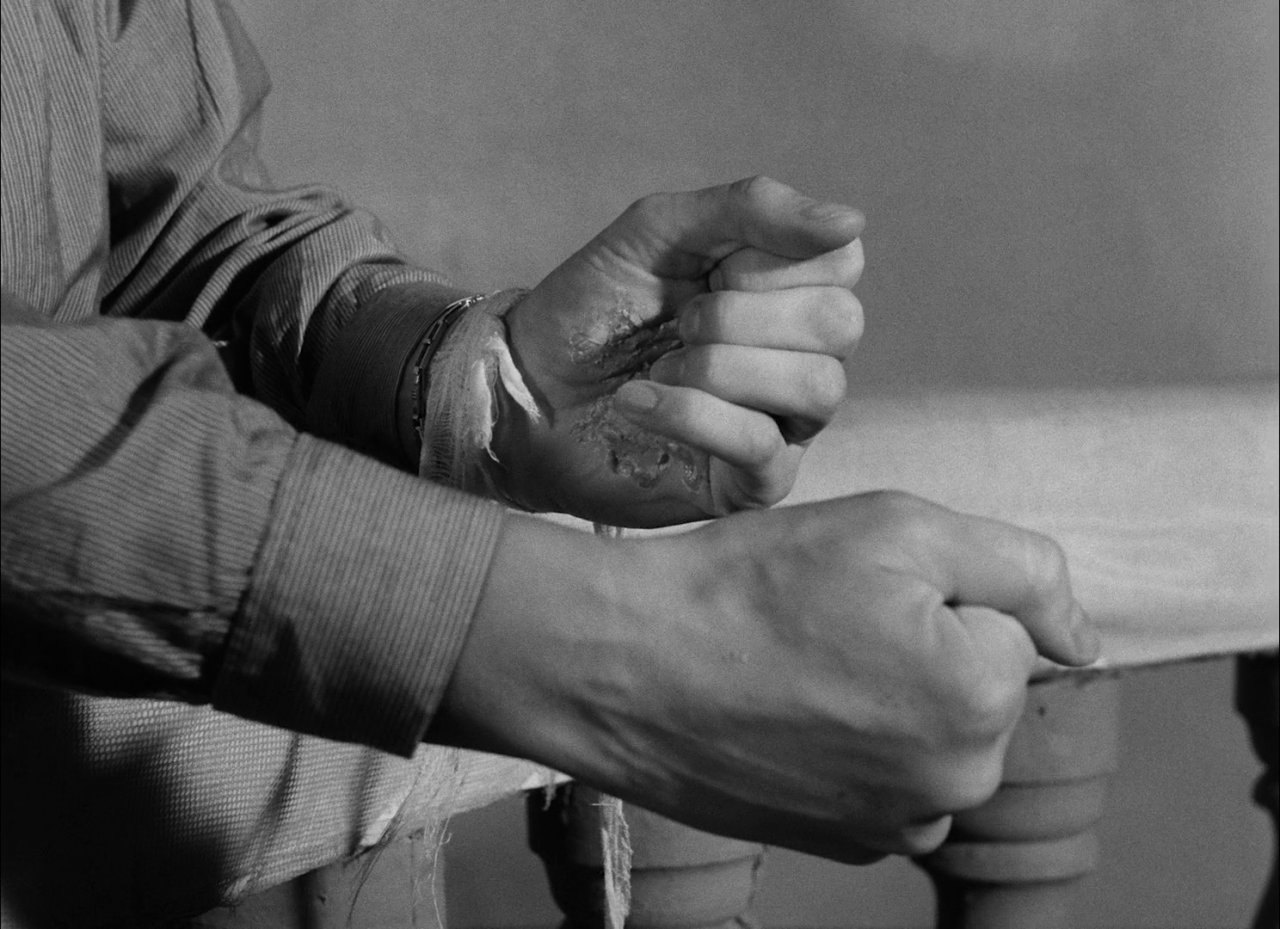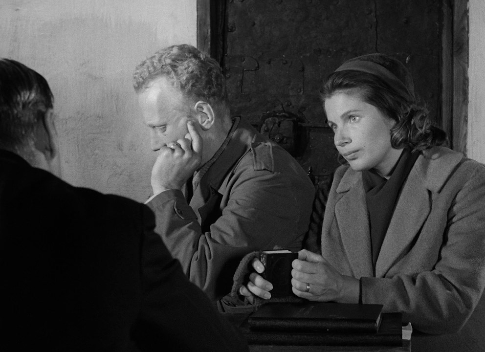 第4話、タイトルは「涙の谷」。揺れ動く心と言ったらよいか。夫が戻ってくるのを愛人が迎えているのだと思ったが、半年ぶりに妻のもとに帰ってきたようだった。妻は若返っていた。愛人もできていたようで、夫は冷静に受け止めている。夫のほうはうまくいってないらしい。妻のもとに帰りたがっているようにもみえるが、ときおり愛人のことを話はじめると妻の顔はくもる。ここでも妻と夫の二人劇で、ほとんどが会話だけで話は進展する。電話が効果的に挿入されるのは、毎回同じ。今回は妻の愛人からだった。夫が来ているのを知っていて嫉妬をしている。帰ってもらうので1時間後に電話するよう言った。夫を追い返すが、振り向いて顔を見合わすと、感極まって抱き合い、今夜は泊まるという。妻は決意して、愛人からの電話を夫の前で、聞こえるように別離を宣言した。妻は泣きながら夫にすがりついた。ふたりはもとの鞘に戻ったように眠りについた。夜中の1時前に夫が寝つかれず、ここにはいられないといって起き出し、やはり帰ると言い出す。妻は夫の愛人から手紙をもらっていて読むように手渡している。引きとめる効果はなく、夫が去ったのを、放心状態で妻はカメラを見つめていた。