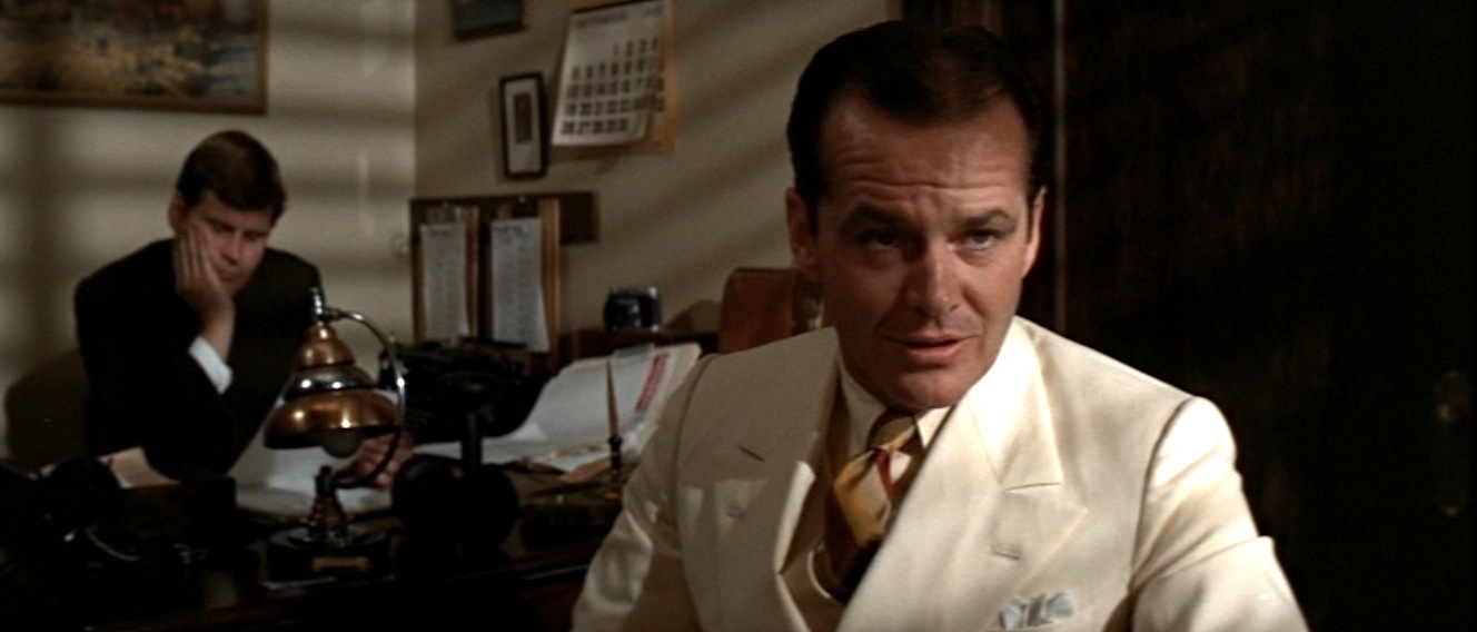 突然の放水で探偵が流されて溺れかける場面がある。鼻を削がれて血が噴き出る場面もそうだ。水死体として現れる局長にも驚かされる。そして最後には夫人が撃ち殺される。それがフェイ・ダナウェイであることから「俺たちに明日はない」のラストシーンを思わせるものでもあった。それらを点として、一本の線を紡いでゆくおもしろさがここにはある。ことばたらずが、映画の醍醐味である。それは原作を読んだところで解決するものではない。