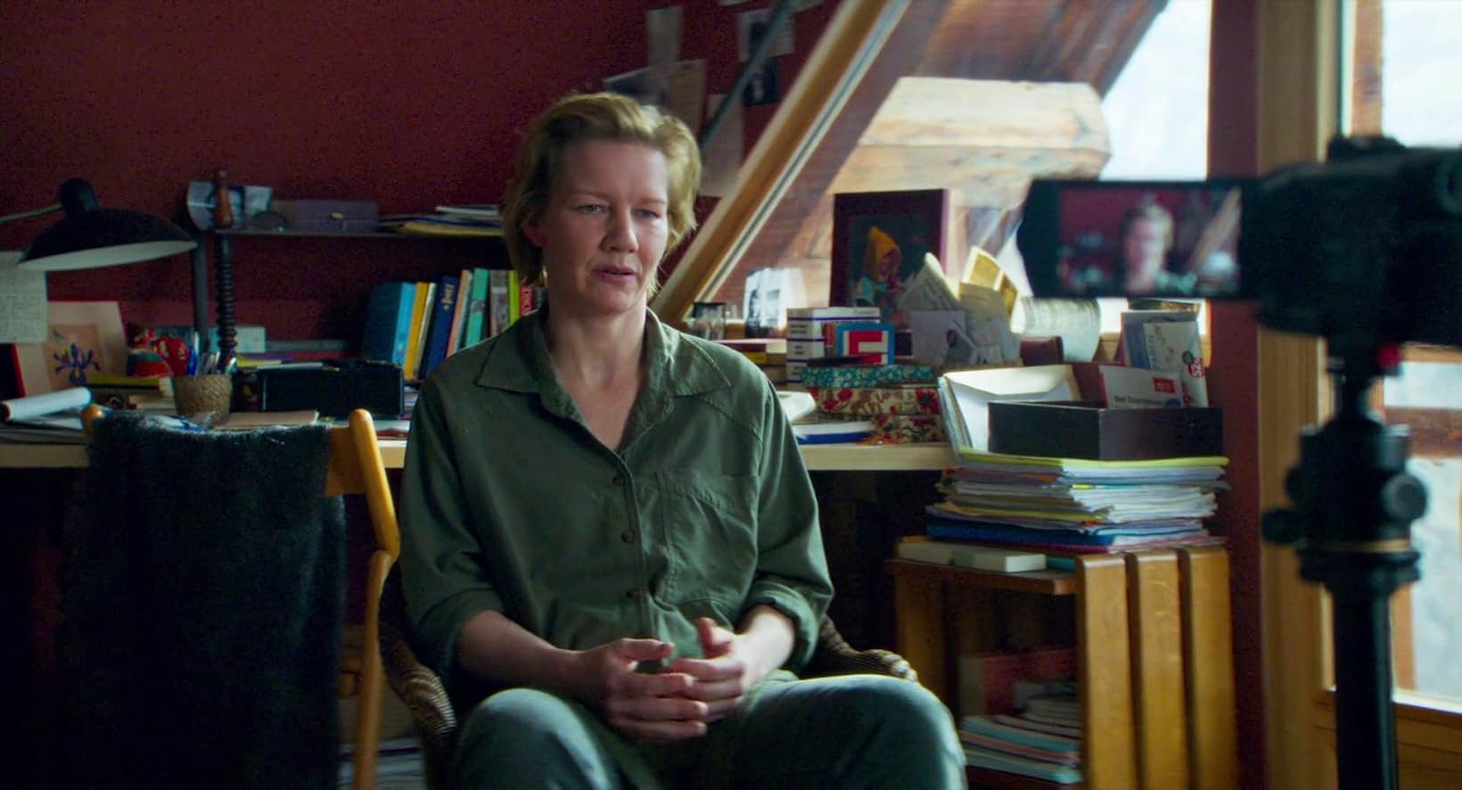 主人公(サンドラ)はドイツ出身の女性作家であり、夫はフランス人だが、視覚障害のある息子がひとりいて、三人はながらくロンドンに暮らしていた。夫も同じように作家をめざしたが、才能は妻のほうがうわまわっていて、教師としての生活に甘んじていた。夫の希望により妻は従って、今はフランスにいて、グルノーブル近郊の山岳地帯に住んでいる。フランス語と英語とドイツ語が混ざりながら飛び交っている。他者に聞かれたくないときには、ことばを切り替えることもできた。