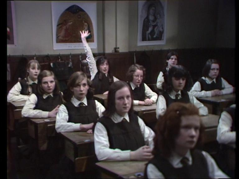 男性教師とのつきあいが活発なのも、規律を損ねるものだ。ふたりで教室にいて生徒たちにあやしまれるシーンもあった。相手は美術教師(テディ)だったが、ばつが悪く2年後に14歳になると習うことになる先生だと、生徒たちに紹介している。妻帯して子どもが6人もいたが、言い寄られると、否定はするのだが抱きすくめられると拒みきれないで、突然扉を開いた生徒にキスをしているのを見られてしまう。生徒は隠しているが、仲間の追求をかわせずに、しゃべりはじめると子どもたちの興味は、ますます拡大していく。