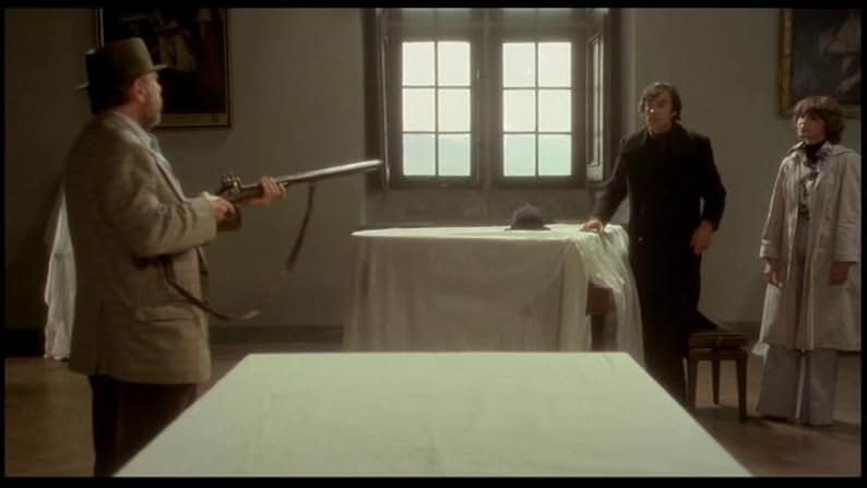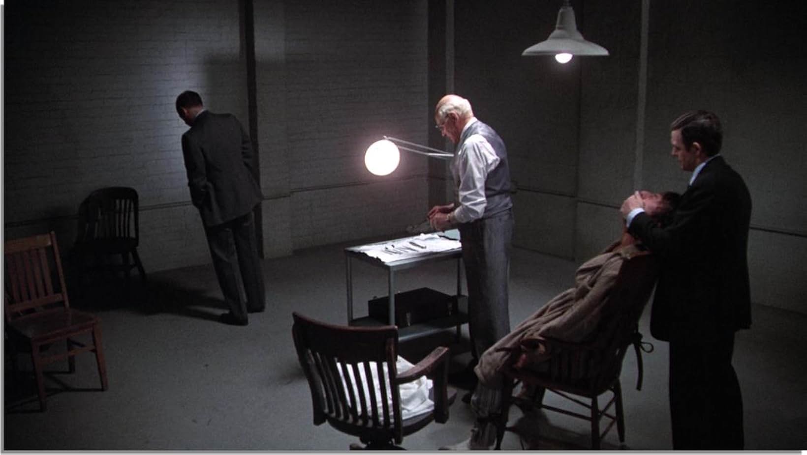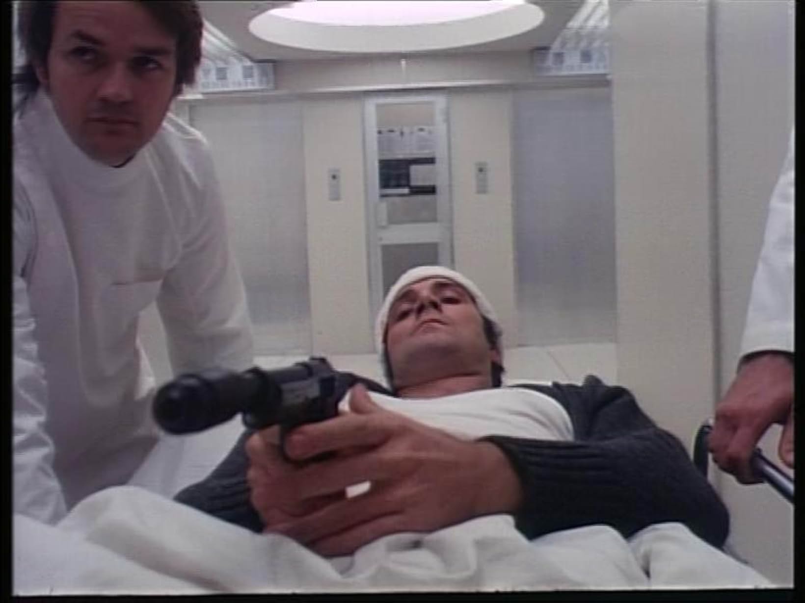 このとき後部座席のドアが開き、眠らされていた司祭が、死んだように転がり出る。目撃されたことで、霊媒師に身の危険が迫る。注射をされて眠らされて、隠し部屋に監禁され、宝石商と女は車を急がせた。恋人が遅れてやってきて霊媒師を見つける。