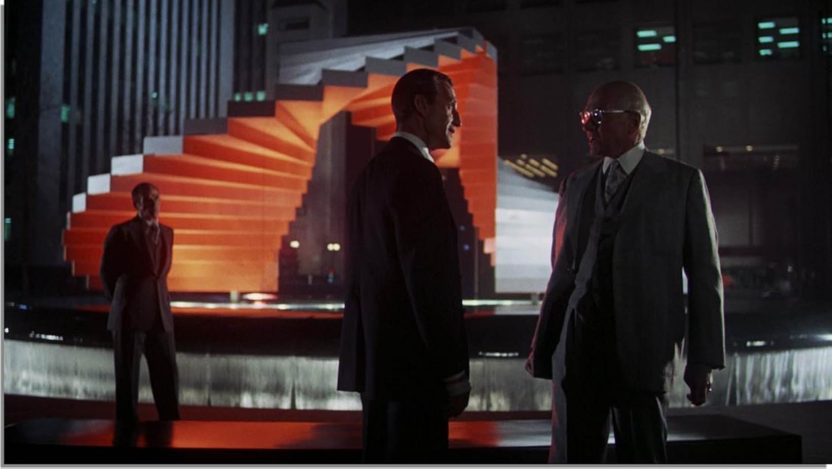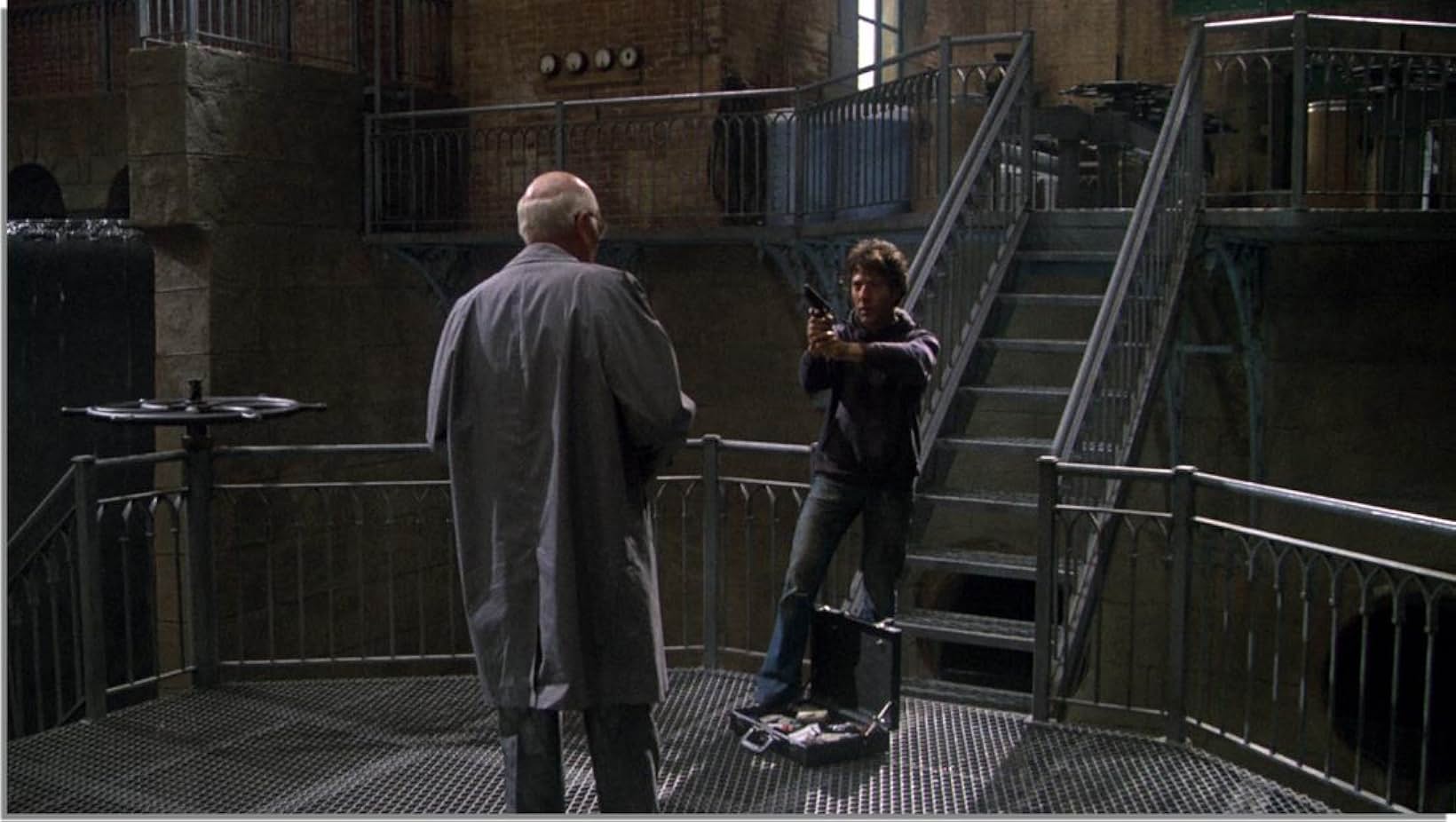 サングラスをかけ黒いコートをきた謎めいた女だったが、ここからカメラはこの女を追いはじめる。第二章のはじまりだが、この切り替えのカメラワークが、しゃれていてみごとだ。先の話と何らかの関係があるはずだが、ここではまだわからない。女は暗い夜道を進み、警察官に導かれて建物に入っていく。厳しい顔立ちの男たちを前にして、銃を構えるが、人質を取っているので必要ないと言われている。