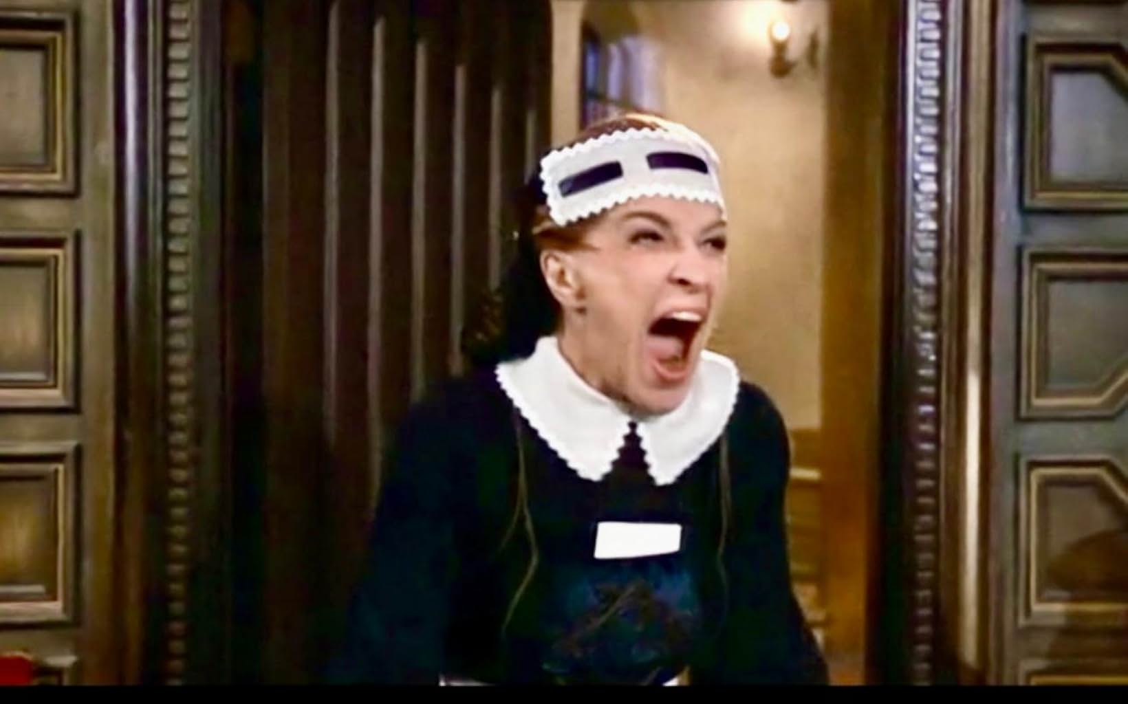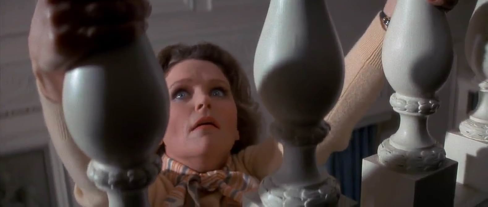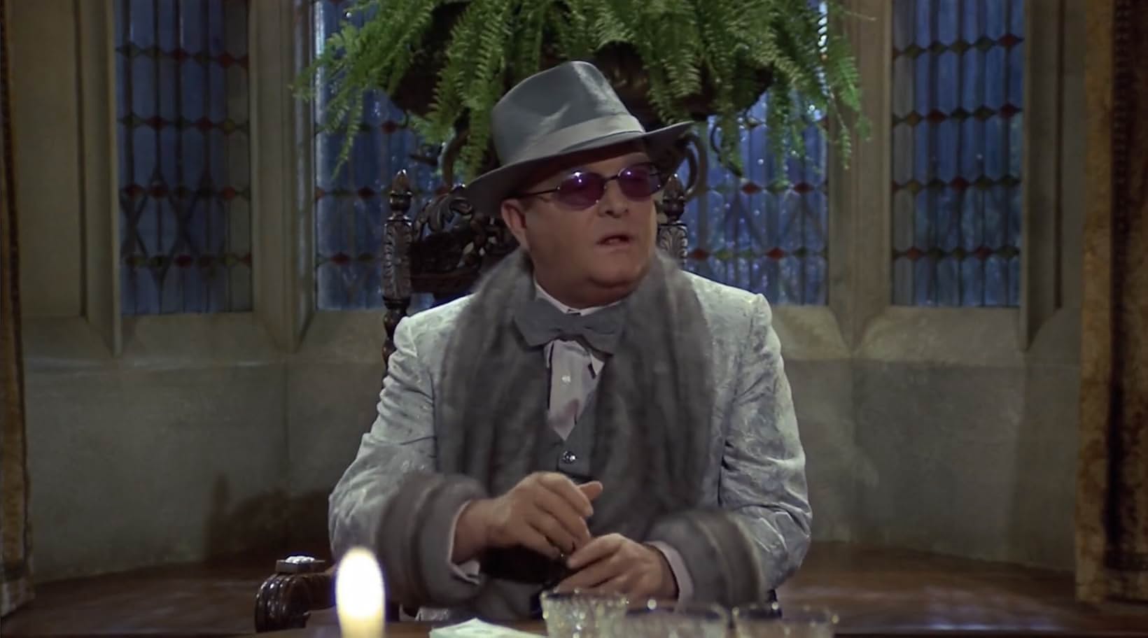 二人は申し合わせて、宝石商が宝石を手に入れて帰ってきたとき、タイミングよく入れ替わりに、犯人二人を隠し部屋に閉じ込めてしまう。安堵した霊媒師は放心状態になって、階段をあがりシャンデリアを指差している。指先には大きなダイヤが紛れ込んでいた。