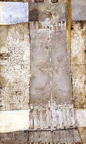 標的については絵であって標的自体ではないかといわれると、そうでもなくて標的に向かって矢を放とうと思えば放つことはできる。標的としても使用は可能だ。そうしないのはジョーンズの価値が標的をうわまわっているからだ。「四つの顔のある標的」(1955)では標的の上部に人の顔が埋め込まれている。そこだけは絵画ではなくて石膏による立体物だ。枠内からこちらをのぞいているようにみえる。標的を狙うものにとっては撃ちそこなって顔に当たる可能性もある。スリリングにそんなことも考えてしまう。標的はジョーンズの作品だが、これが絵画ではなく標的であるためには、標的に矢を当てておけばいい。このことに気がついたのがラウシェンバーグだったように思う。そこからコンバインペインティングという概念にたどり着いた。