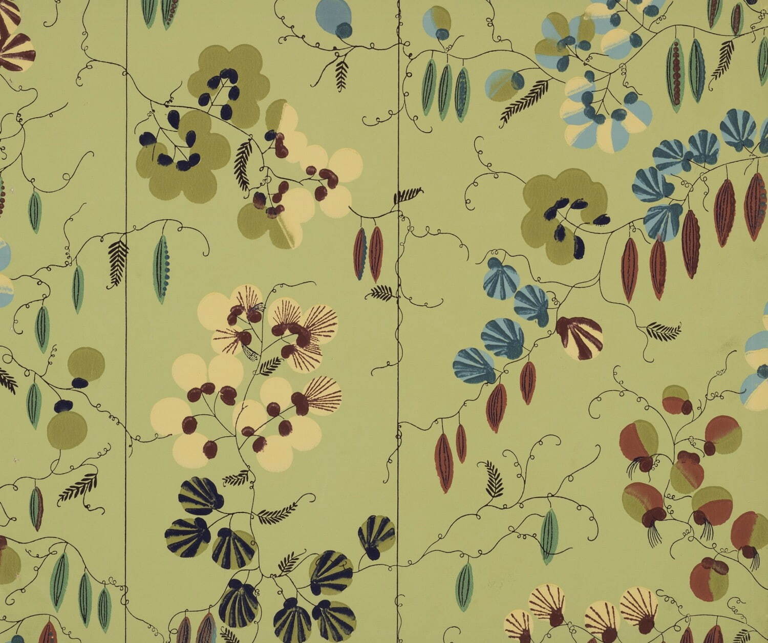 京都という風土もぬきにはできない。東京との対向姿勢というのもあるだろう。千年の古都がつちかってきた艶やかな雅びの伝統がほとばしる。アールヌーヴォー以来ウィーンに根づいた装飾には、江戸時代に継承された琳派の色彩感覚が読み取れる。屏風という形式に反映するものもあるが、壁紙のままでもパターン化されたリズミカルなファンタジーの繰り返しはエキゾチックで、光琳の型紙を下敷きにしたような印象を残す。ときには東洋趣味はメソポタミア文明やロシア的旅情を彷彿とさせるプリミティブな造形にまで、広がりを見せている。とりわけ「木立」1925-35と「そらまめ」1928と「クレムリン」1929と「象と子ども」1943がいい。