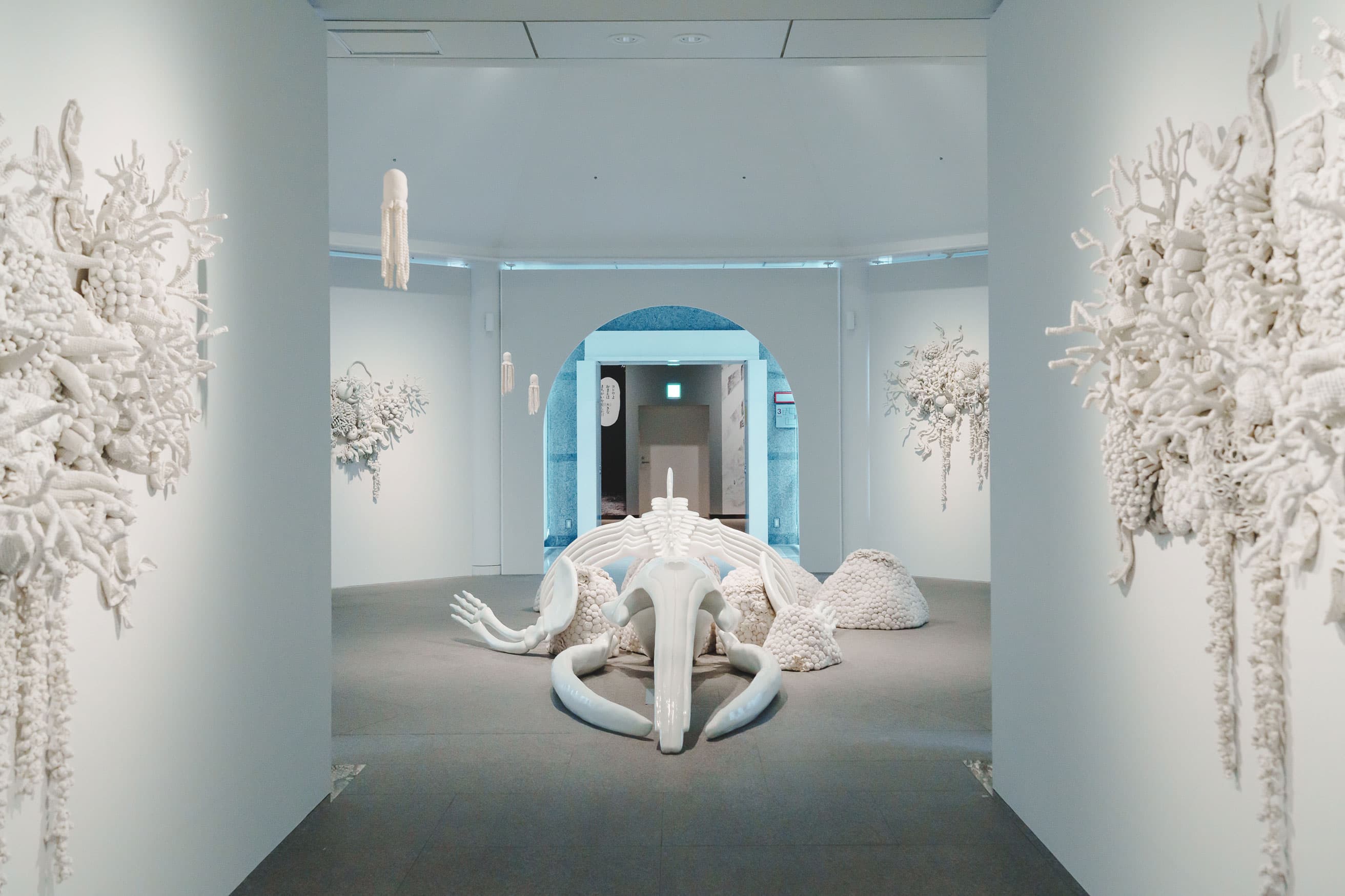 インドネシアの若い作家(ムルヤナ)によるインスタレーション「《海流と開花のあいだ》2019-」だが、生と死が隣り合わせており、増殖する原色の深海のイメージが強烈だった。死滅した白骨と対比をなし、日本人なら竜宮城を思い浮かべるものだ(1)。