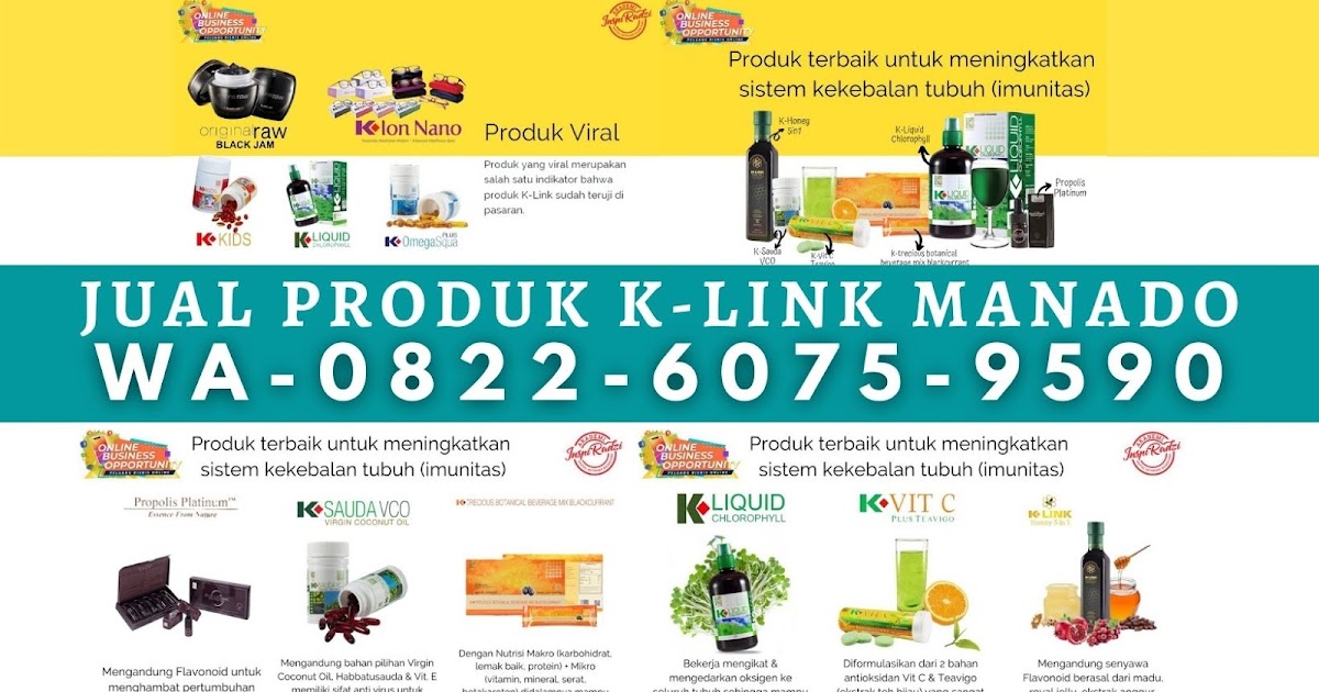 Kami Distributor Resmi K-link Manado, menjual Produk - Produk terbaik yang dimiliki oleh K-link Indonesia, segera hubungi kami untuk mendapatkan pelayanan terbaik.. Salam Hidup Sehat Bersama K-Link Indonesia