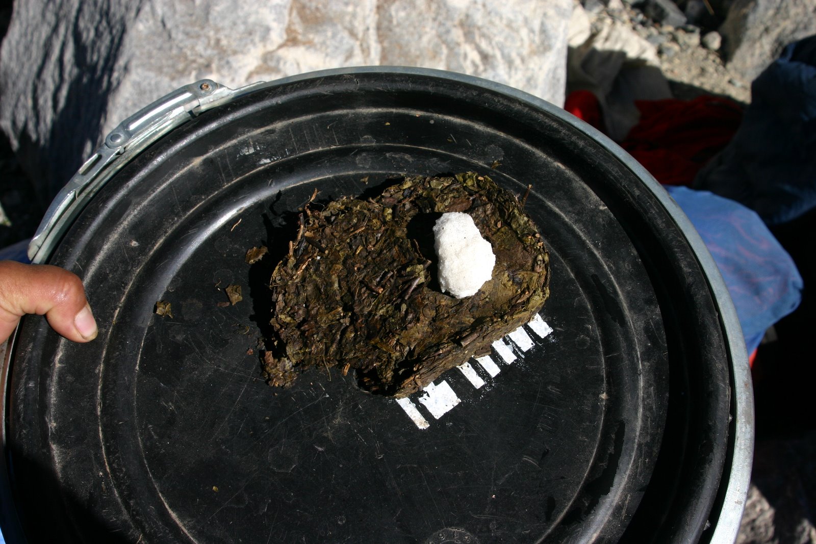 Misschien had Ton wel het medicijn van de yak drijvers geslikt waarmee zij later op de dag bezig waren. Het leek nog het meeste op yak kak met een brok zout er op. Waarvoor het was kwamen we niet te weten.