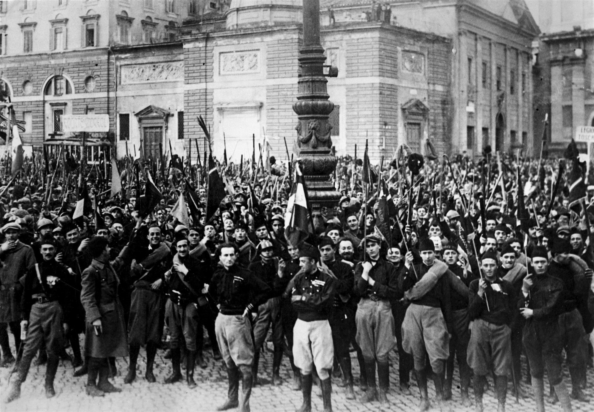 Entre 1919 y 1920, Italia sufrió una grave crisis económica que derivó en el Biennio Rosso (Bienio Rojo), una etapa de gran conflictividad social: inspirados por la Revolución Rusa, los los campesinos se sublevaron y los obreros tomaron las fábricas, por lo que las clases medias, los terratenientes y los empresarios entraron en pánico ante el miedo de una revolución comunista. Ante la debilidad del gobierno liberal democrático para mantener el orden, las élites empezaron a apoyar y financiar a los Fasci di Combattimento (grupos paramilitares creados por MUSSOLINI conocidos como los Camisas Negras) para disolver a golpes y palizas las huelgas.