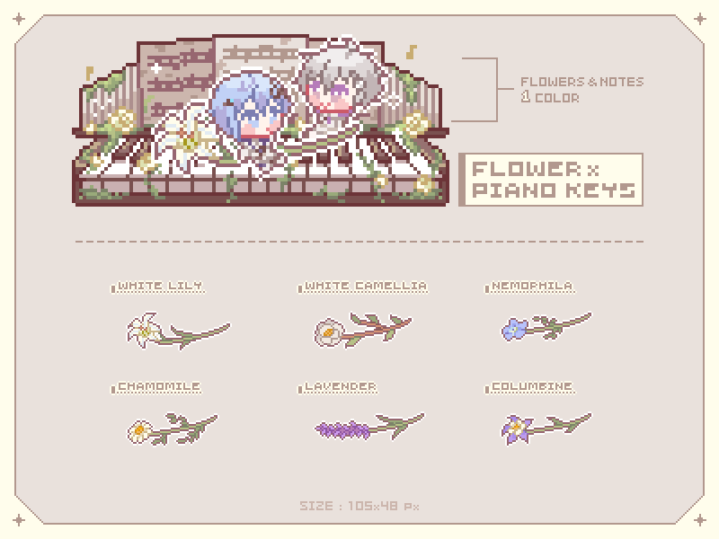 中間花種:百合花/白椿花/粉蝶花/洋甘菊/薰衣草/耬鬥菜