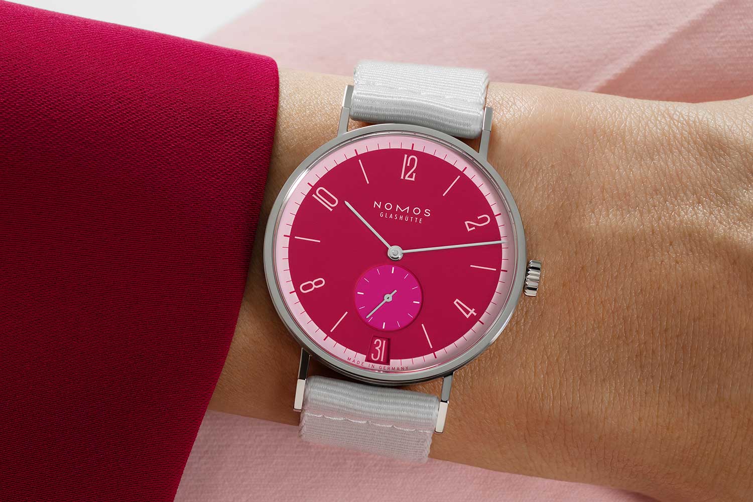 [_] . Nomos Glashütte Tangente 38 Date Chili