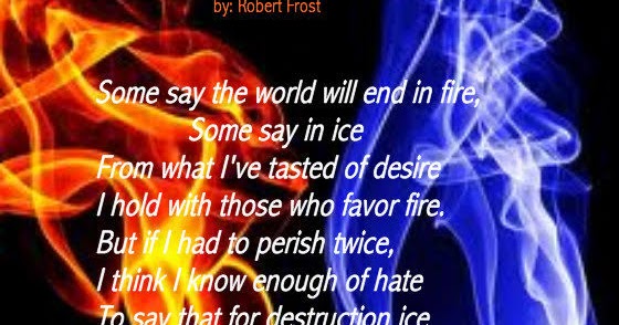Fire and Ice Is a very short but remarkable poem of Robert frost published in 1920. In which the poet’s philosophical temperament is to be found. The present short poem deals with the theme of the destruction of universe. To read more about this poem click ont his image.