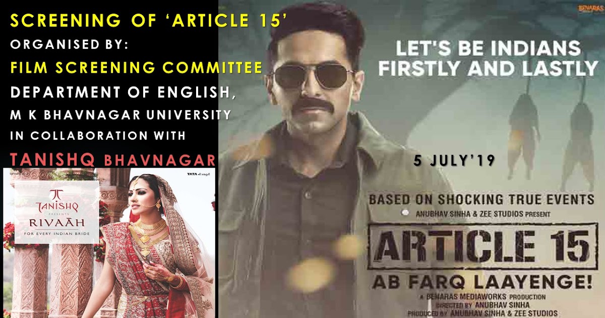 Screening of "Article 15" organised by Flim screening Committee. We watched movie "Article 15" on 5 July 2019 at MAXUS CINEMA, HIMALA...
