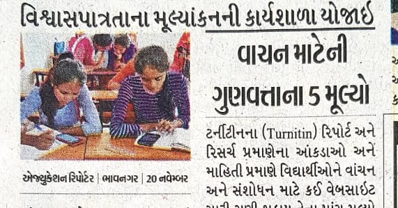 Thinking Activity :- Workshop on Quality and Authenticity of Web Resources On 19th November 2019 Professor. Dilip Barad sir organi...