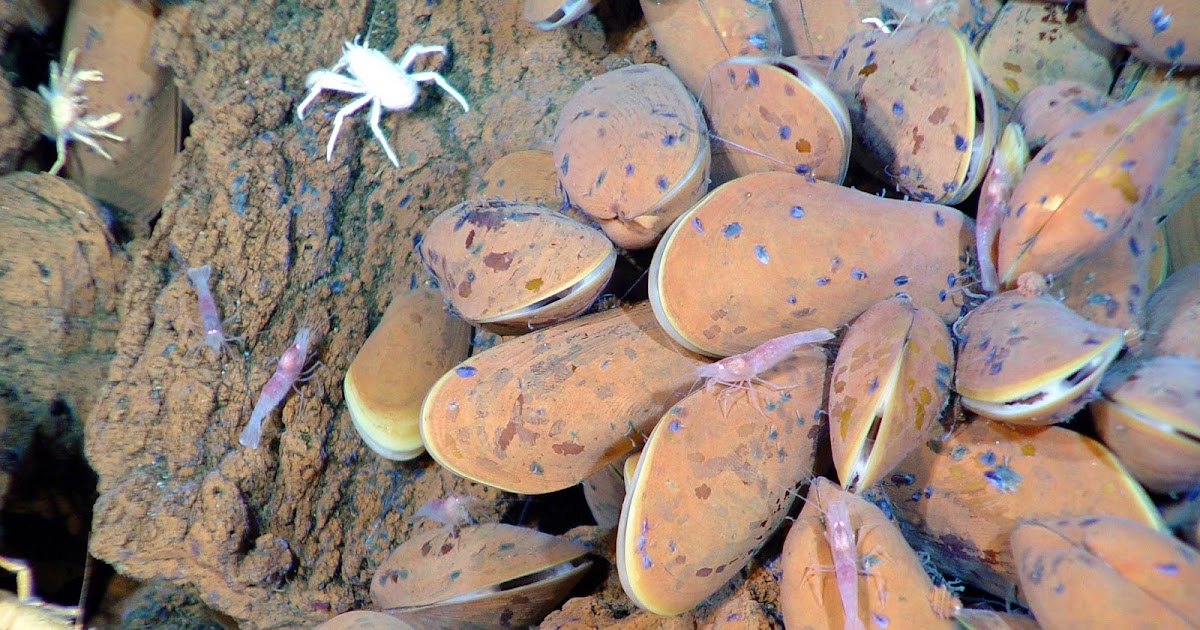 The Mariana Volcanic Arc contains objects of scientific interest, including the largest active mud volcanoes on Earth. The Champagne vent, located at the Eifuku submarine volcano, produces almost pure liquid carbon dioxide. This phenomenon has only been observed at one other site in the world. The Sulfur Cauldron, a pool of liquid sulfur, is found at the Daikoku submarine volcano. The only other known location of molten sulfur is on Io, a moon of Jupiter. Unlike other reefs across the Pacific, the northernmost Mariana reefs provide unique volcanic habitats that support marine biological communities requiring basalt. Maug Crater represents one of only a handful of places on Earth where photosynthetic and chemosynthetic communities of life are known to come together.