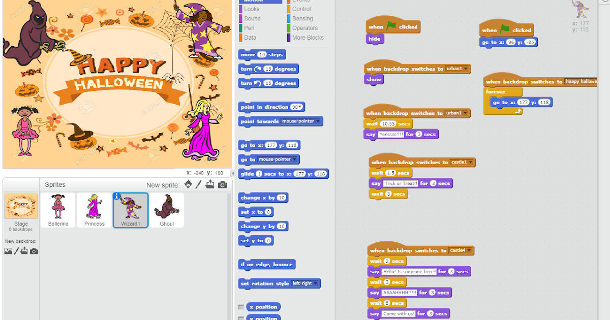 Hello everyone. Today I present a play developed with Scratch, the theme chosen was Halloween, you can see the play by clicking the link, ...