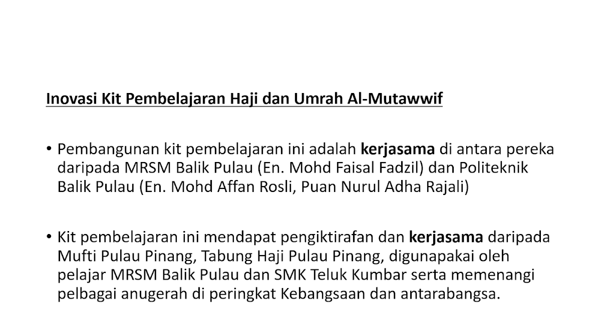 Berikut merupakan beberapa inovasi kecil-kecilan yang guru/staf laksanakan di MRSM Balik Pulau. Projek-projek ini adalah berdasarkan inisia...