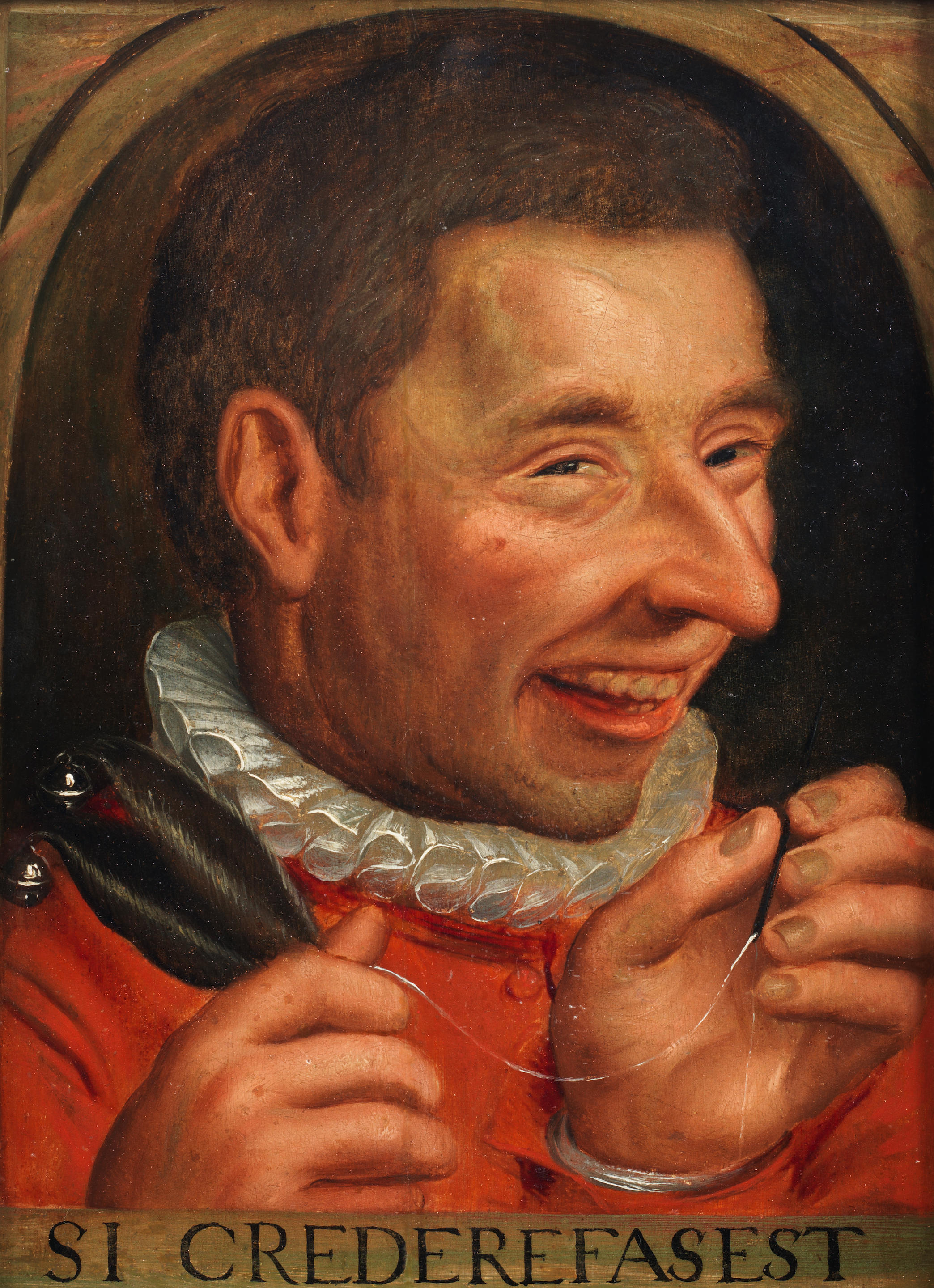 (painting - presumably a self-portrait - by an unknown 15th century genius probably happy to have escaped the holy inquisition by slipping into a jester's suit)
