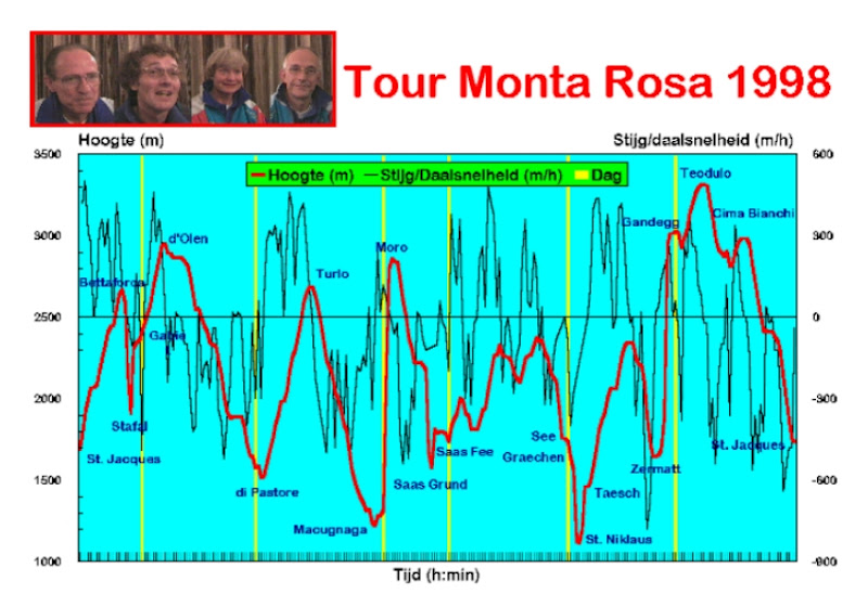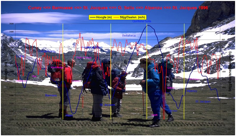 Valle d' Ayas was geen onbekend gebied. Het was in 1996 en 1998 eerder doorkruist via Colle delle Cime Bianchi (2896 m), Col de Nanaz (2773 m), Colle di Bettaforca (2714 m) en Colle di Pinter (2777 m) bij het lopen van de Alte Via 1 en de Tour de Monta Rosa. Het spreekt voor zich dat het weerzien van de cols om het vervaagde beeld op te halen het doel was. Hieraan werd nog Colle Portola (2410 m), Lago Blu en Lago Perrin toegevoegd.