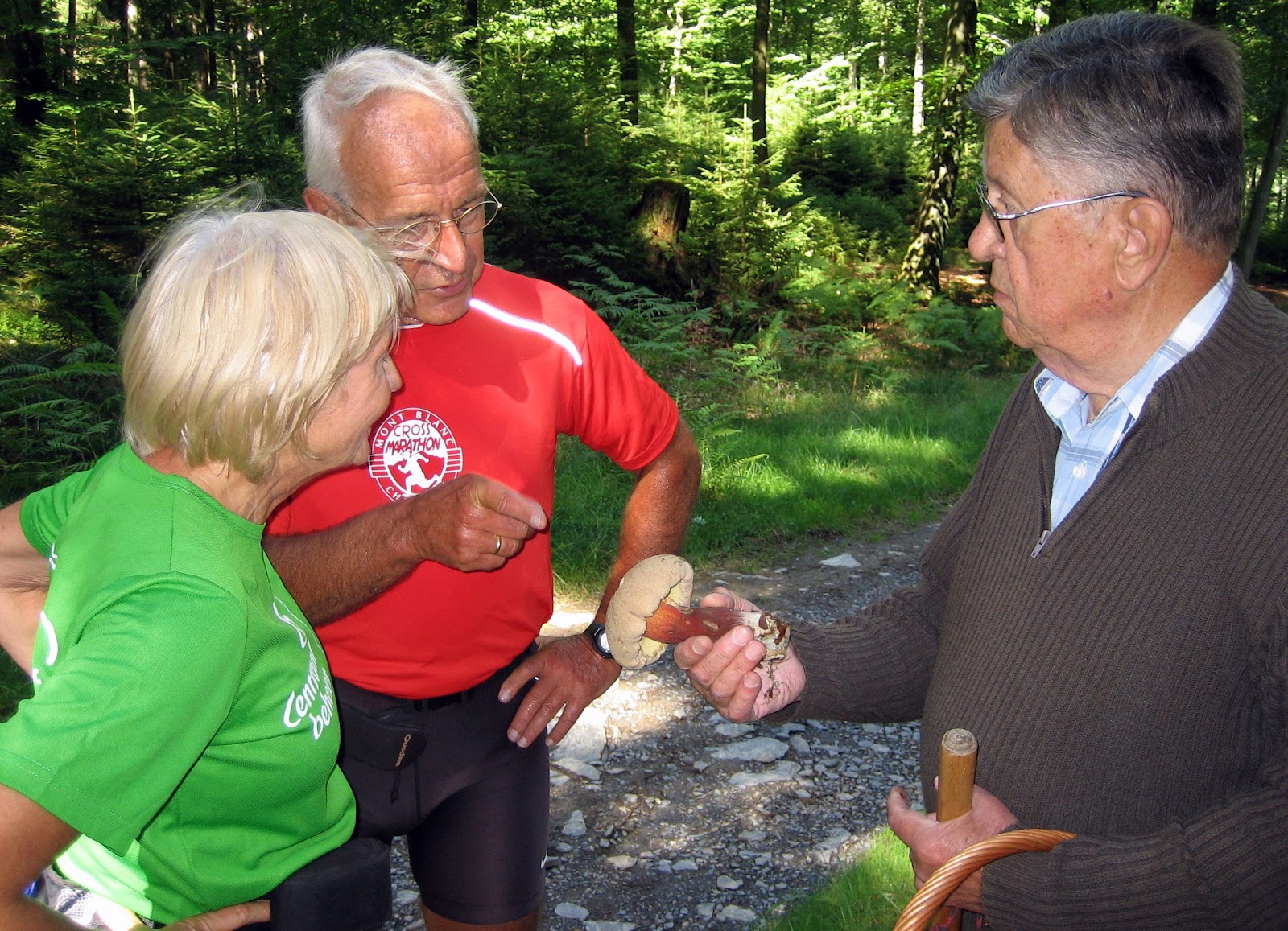 Woensdag werd naar de Ardennen getuft. Na een stief kwartiertje bijpraten over de verbouwing, hardlopen met Nepal in het bijzonder en nog meer koetjes en kalfjes gingen wij op pad. Vroeger wist Jo heg noch steg te vinden maar in de Ardennen is hij bijgeschoold. Achteloos slaat hij het ene na het andere doodlopende pad in om vervolgens dwars door bos, hei, moerassen en beken verder te worstelen. Dit zorgde in ieder geval voor wat bijvoer in de vorm van bosbessen en bramen.Paddentoelen had ook gekund maar wij durfden dat niet aan zelfs na een spoedcursus door een plukkend ouder echtpaar die gezien hun overleven wel deskundig moesten zijn.