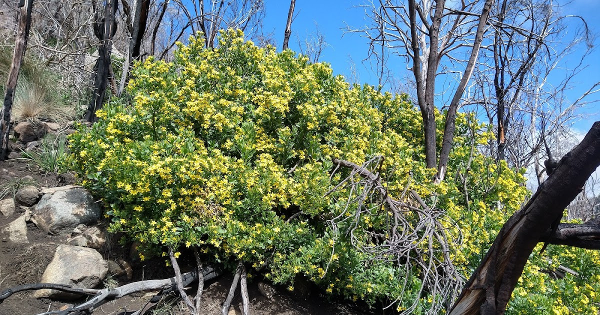 Soon after entering the Montrose Fire Trail there is a slope which once had a proliferation of Boneseed (Chrysanthemoides monilifera).