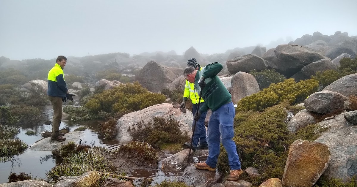 During the track assessment done for Wellington Park Management Trust in 2002 there was section of the South Wellington track between the summit and the junction with the Ice House track that was recommended to be hardened with local rock. The location is AGD94 55 518943 5249531.