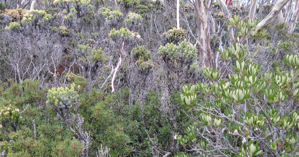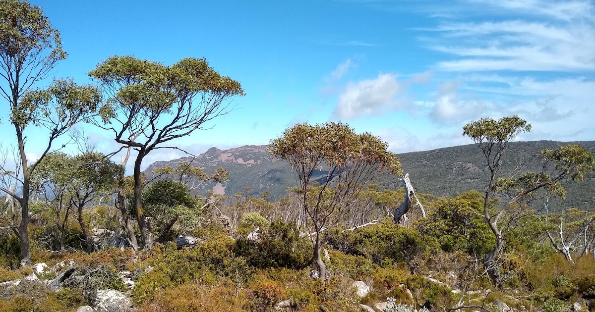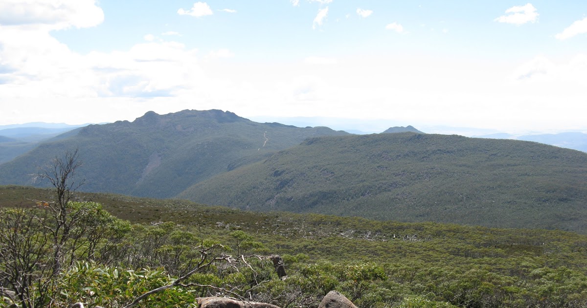 Since the new track section is now on hard ground there will be less damage to the surroundings caused by walkers. A part traverses an interesting eucalypt woodland. An additional bonus gained is the improved view—down into the Mountain River valley and then up to Collins Bonnet and Mount Connection. These benefits were gained by removing and trimming vegetation, moving rocks aside and also by placing locally sourced rock into hollows and a few potentially wet spots to make a firm, flat and dry walking surface. The old section of track has now been closed for rehabilitation.