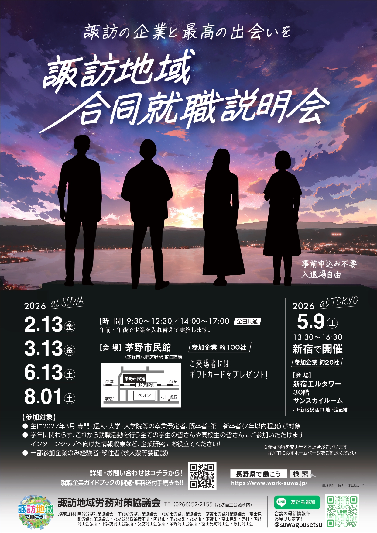 周知用ポスターダウンロード [PDF] [JPEG]※労務対策協議会は、企業が主体となって活動する団体(協議会)です。協議会で行っている広報活動は、新聞、TVCM、WEB広告、YouTube広告などのみで、学生の囲い込みはいたしません。各社必ず、OBOGがいる大学等、自社HP、SNS、就活サイトなどへ周知・広報してください。