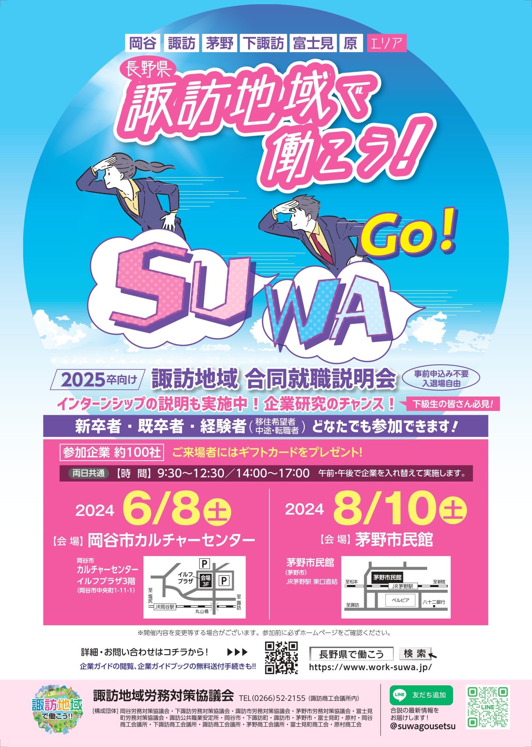 諏訪地域へ就職を希望している若年求職者のため、企業、行政、商工会議所、商工会が協力して就職活動のサポートをしています。